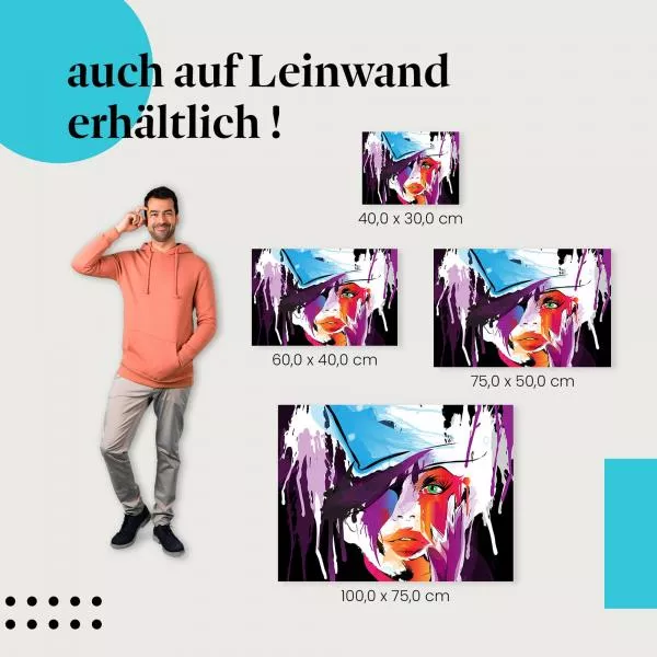 Bestellen Sie jetzt "Abstrakte Kunst: Frau mit Hut & Farbe" und holen Sie sich ein Stück Kunst direkt nach Hause!