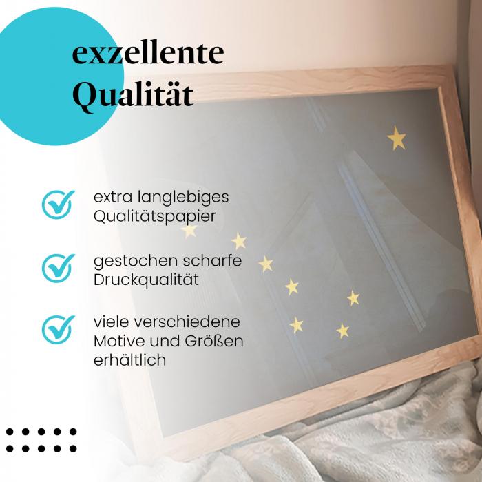 - Poster: Gedruckt auf 260 g/qm starkem Satin-Fotopapier für eine edle Optik und langanhaltende Freude. Wir legen großen Wert auf Nachhaltigkeit und verwenden ausschließlich Papier aus verantwortungsvollen Quellen.
