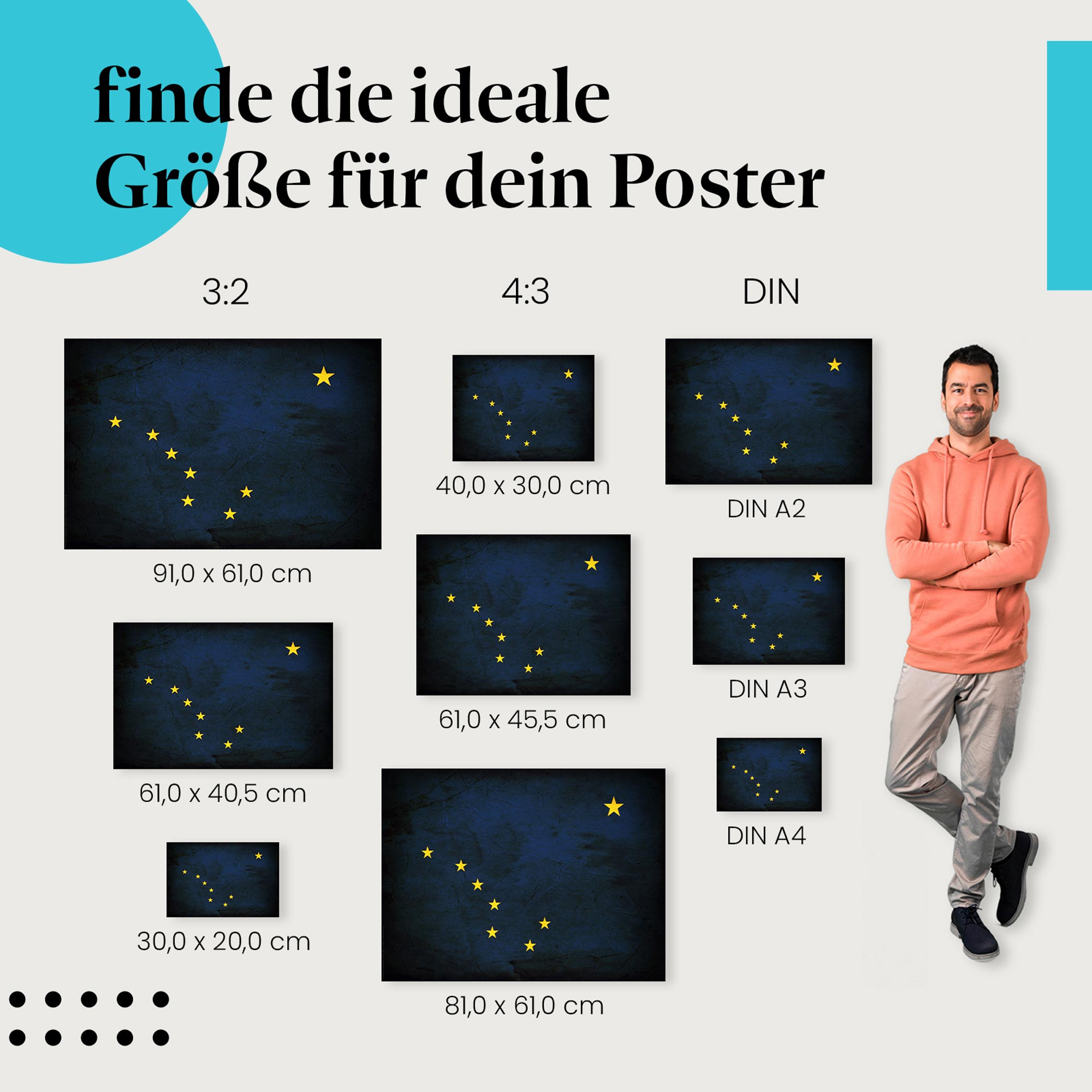 Alaska: Grunge Flagge, Polarstern & Stärke | Postereck 0350