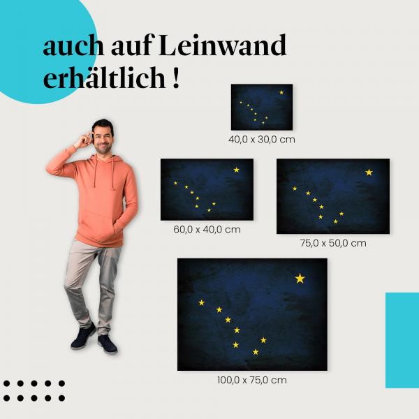 Bestellen Sie jetzt "Alaska: Grunge Flagge, Polarstern & Stärke" und holen Sie sich ein Stück Alaska direkt nach Hause!