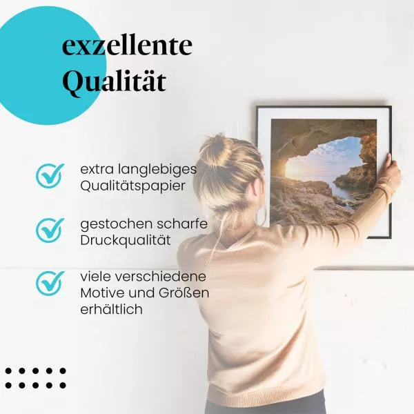 - Poster: Gedruckt auf 260 g/qm starkem Satin-Fotopapier für eine edle Optik und langanhaltende Freude. Wir legen großen Wert auf Nachhaltigkeit und verwenden ausschließlich Papier aus verantwortungsvollen Quellen.