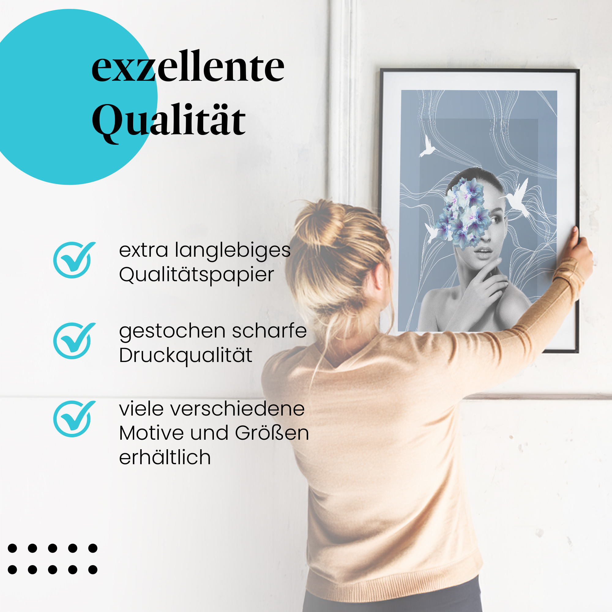 - Hochwertige Leinwand auf Echtholzrahmen (bei Leinwandbildern):