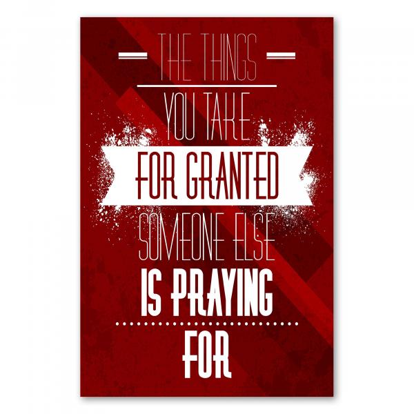 Wertschätzung für die kleinen Dinge: "The things you take for granted, someone else is praying for" - Ein inspirierender Spruch.