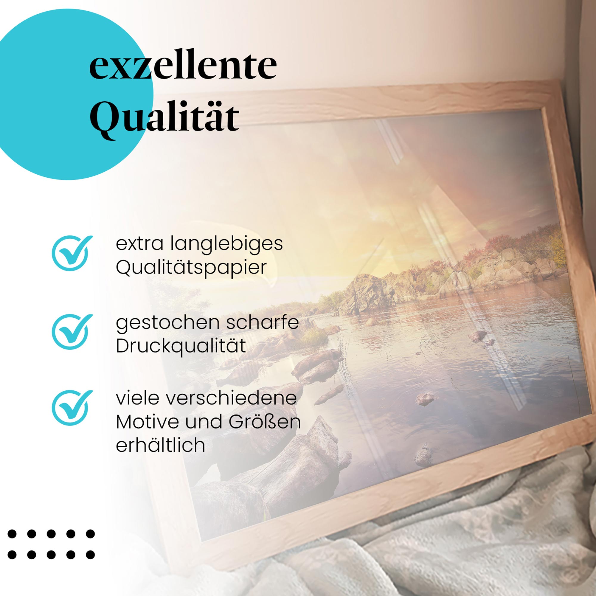 - Hochwertige Leinwand auf Echtholzrahmen (bei Leinwandbildern):