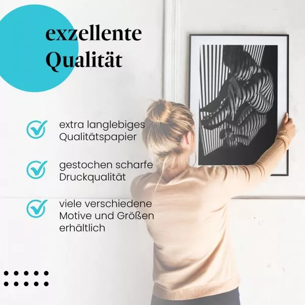 - Poster: Gedruckt auf FSC-zertifiziertem 260 g/qm Satin-Fotopapier für eine edle Optik und langanhaltende Freude. Wir legen großen Wert auf Nachhaltigkeit und verwenden ausschließlich FSC-zertifiziertes Papier.