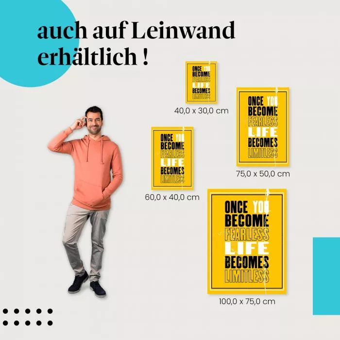 Dieses motivierende Motiv mit der Botschaft "Once You Become Fearless Life Becomes Limitless" fordert dich dazu auf, deine Ängste zu überwinden und ein grenzenloses Leben zu führen.