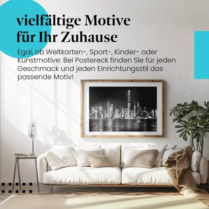 Hongkong bei Nacht: Skyline in Schwarzweiß | Postereck 0085