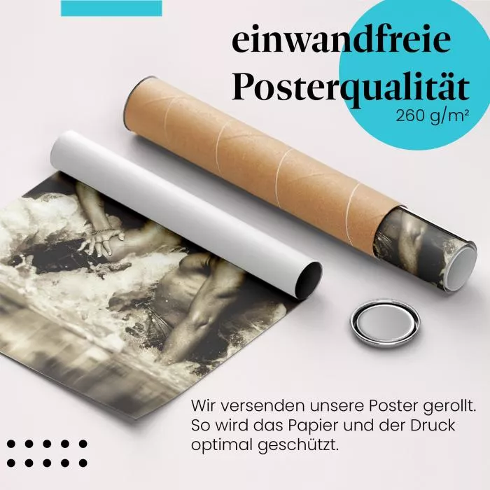 - Poster werden abhängig vom Format entweder gerollt in einer hochwertigen Papierrolle oder flach liegend in einem stabilen Umschlag geliefert.