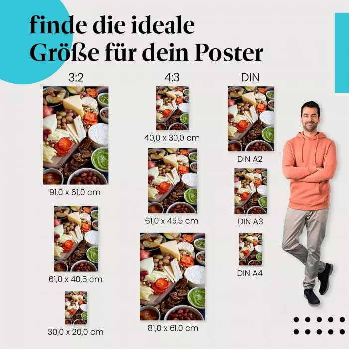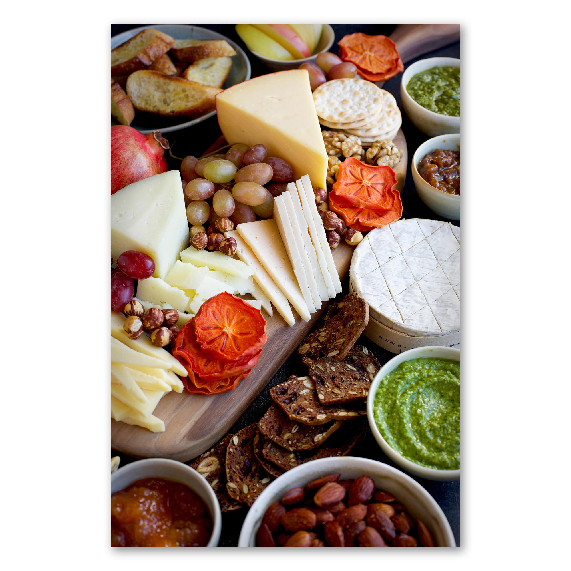 Genussvoller Abend! Mit diesem Poster holst du dir die Gaumenfreuden einer Käseplatte nach Hause.