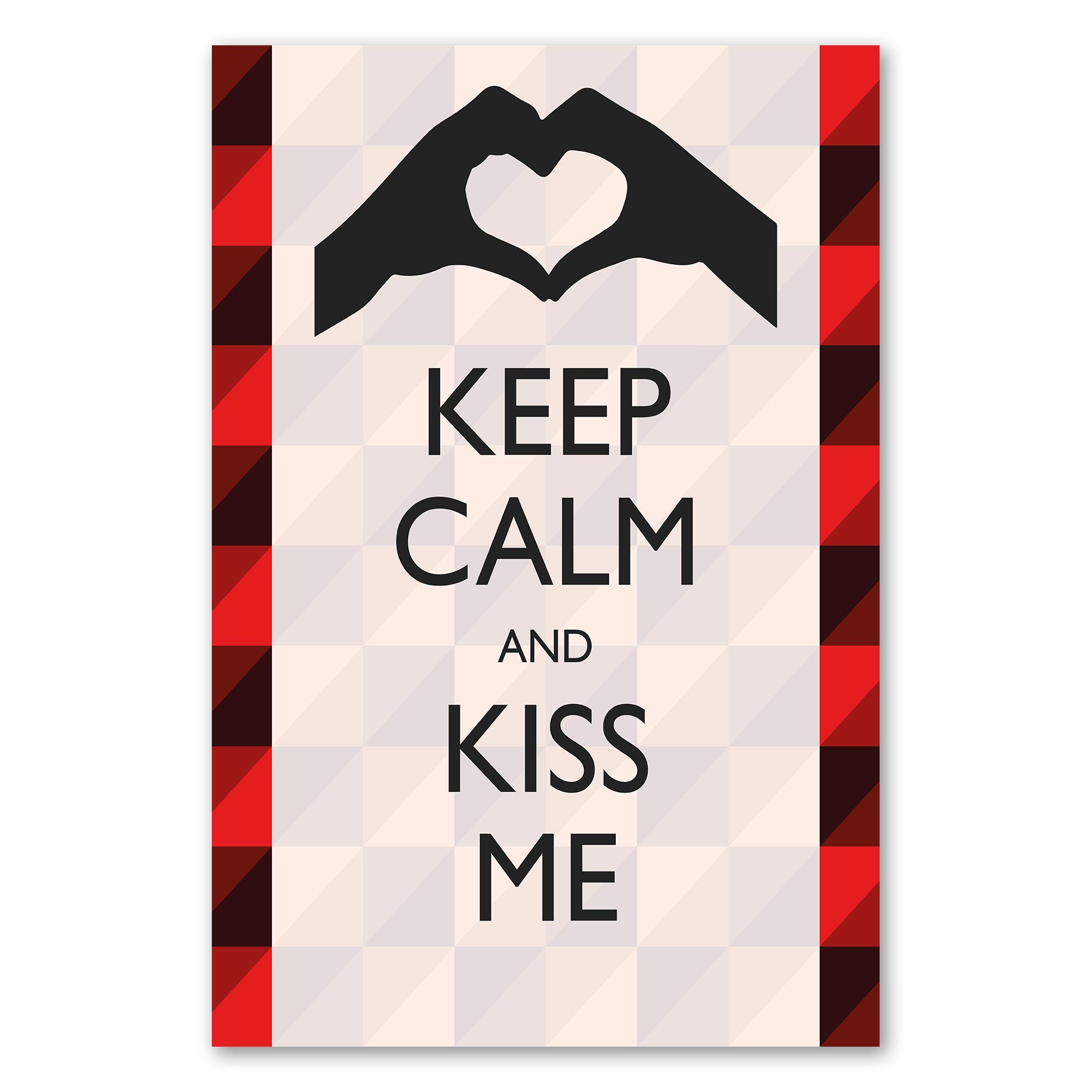 Verzaubere deinen Schatz mit dem romantischen Spruch "Keep Calm and Kiss Me". Perfekt für Valentinstag, Jahrestag oder einfach nur so.
