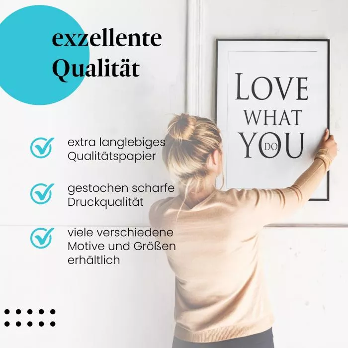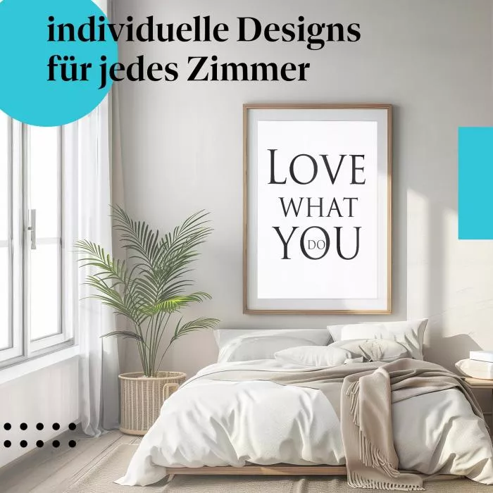 Motivation & Berufung: Minimalistisches Poster mit der Botschaft "Love what you do" in eleganter Schrift.