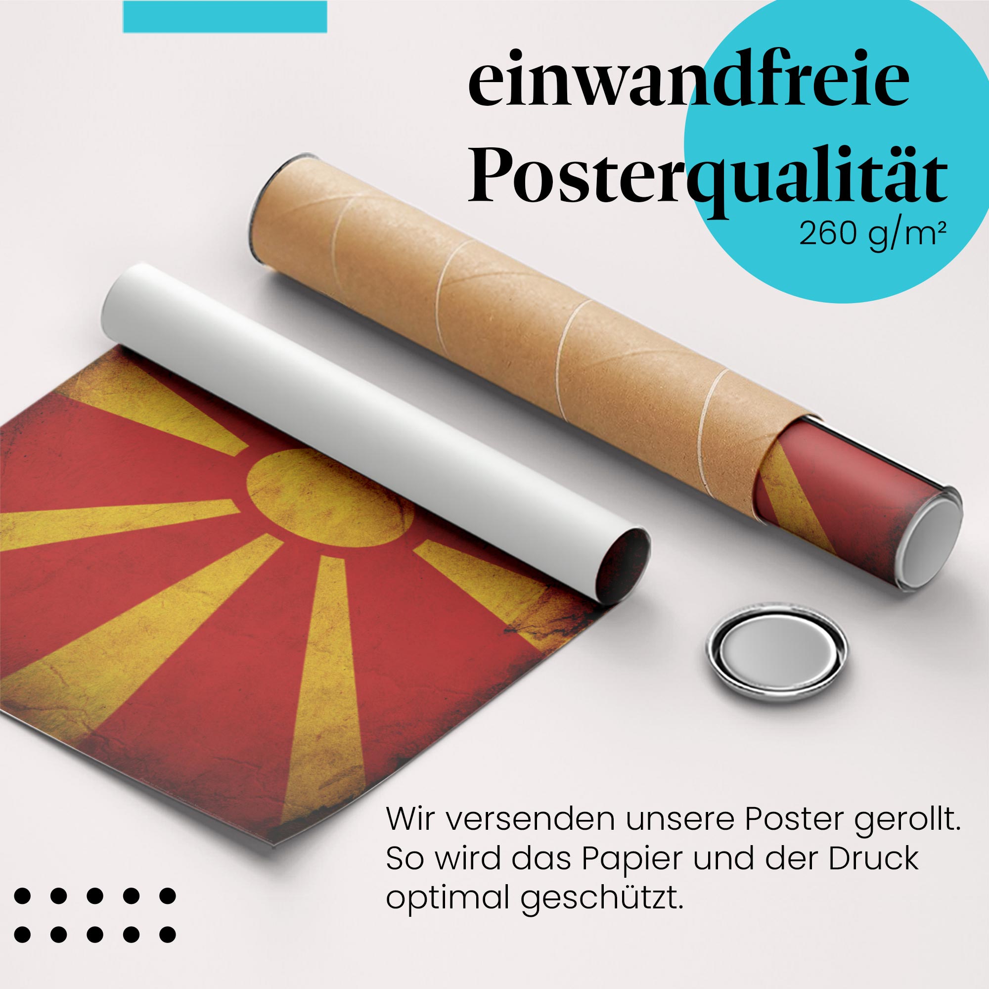 Mazedonien: Vintage Flagge im Retro-Design | Postereck 0328