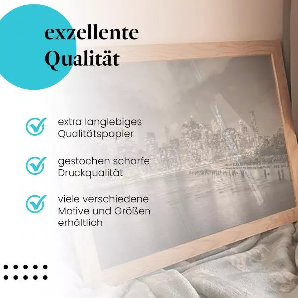- Poster: Gedruckt auf 260 g/qm starkem Satin-Fotopapier für eine edle Optik und langanhaltende Freude. Wir legen großen Wert auf Nachhaltigkeit und verwenden ausschließlich Papier aus verantwortungsvollen Quellen.