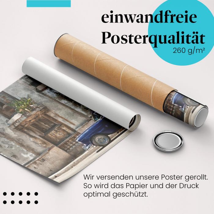 - Poster werden abhängig vom Format entweder gerollt in einer hochwertigen Papierrolle oder flach liegend in einem stabilen Umschlag geliefert.