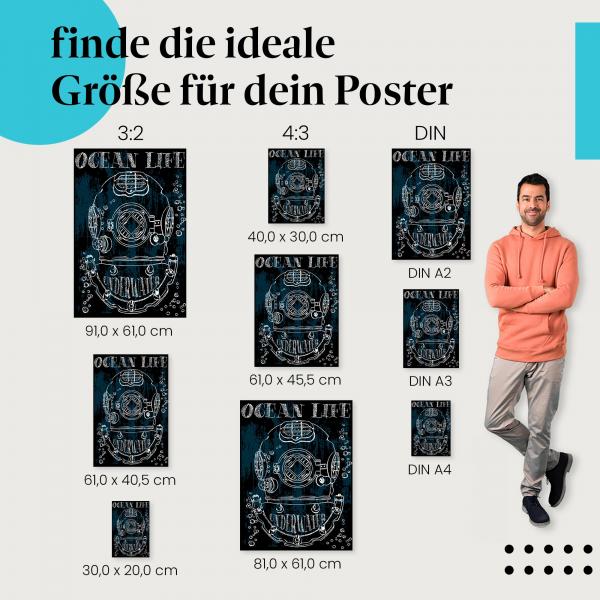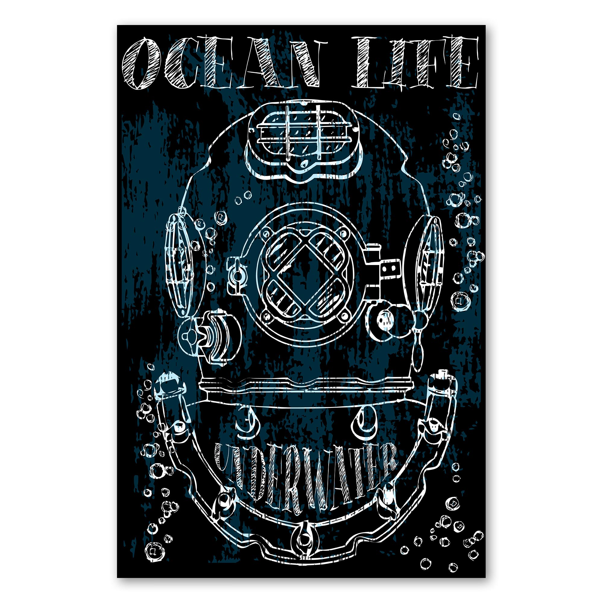 Ein detaillierter Taucherhelm im Vintage-Stil vor einem blauen Hintergrund - das Design "Ocean Life" entführt in die faszinierende Unterwasserwelt.