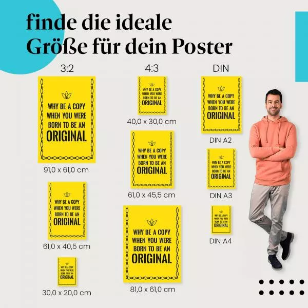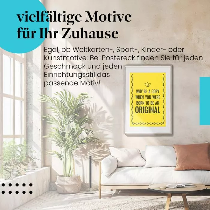 Dieses motivierende Motiv feiert Individualität und Einzigartigkeit. Sei du selbst und steh zu dem, was dich ausmacht! Denn Originalität ist wertvoller als jede Kopie.