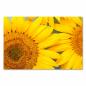 Zwei leuchtend gelbe Sonnenblumen füllen das Bild aus. Die Nahaufnahme zeigt die faszinierende Struktur der Blütenblätter und den Bienenkorb im Zentrum.