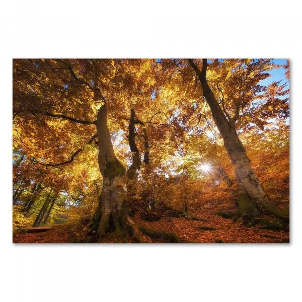 Herbstliche Lichtspiele! Dieses Poster fängt die Magie des Waldes im Herbst ein.