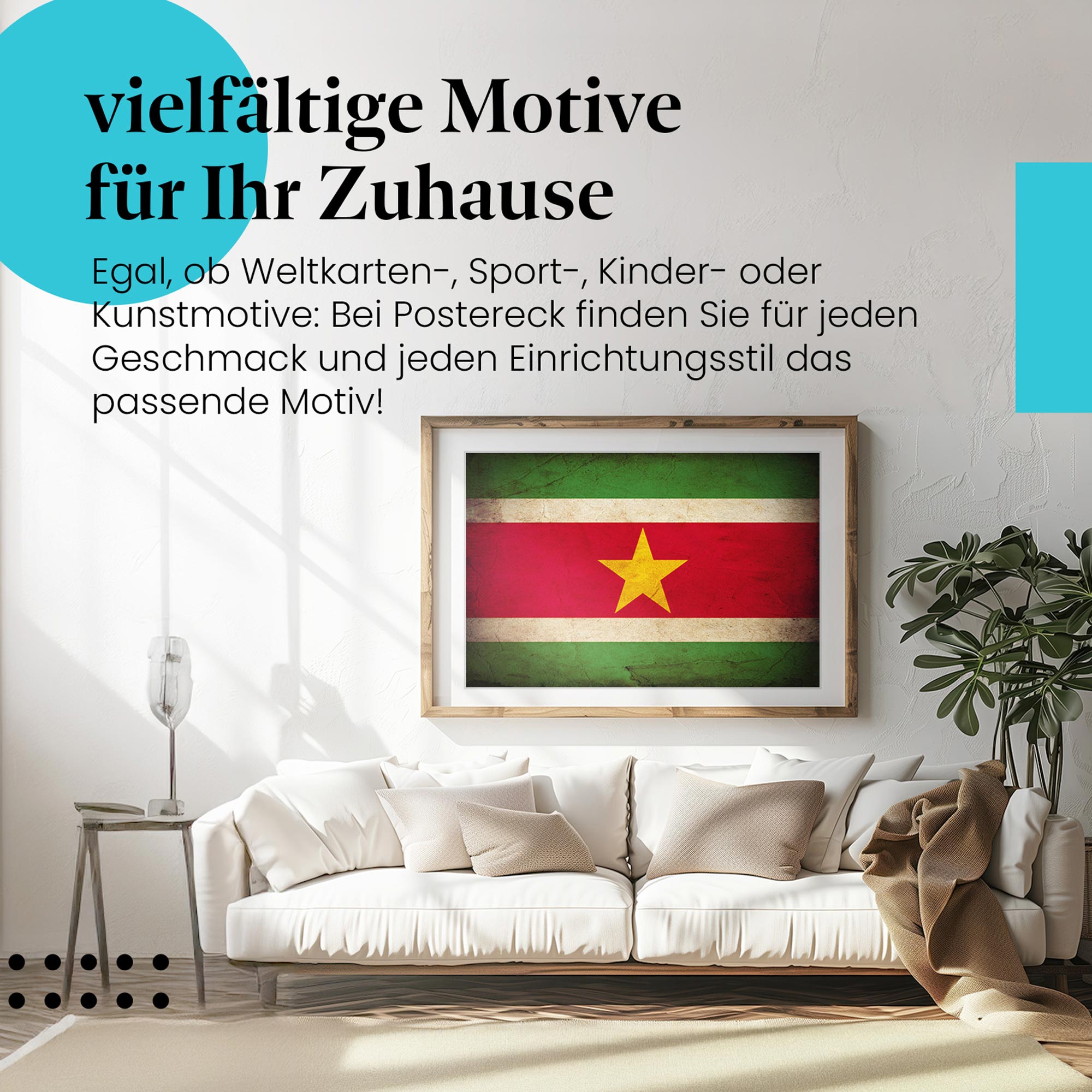 Bestellen Sie jetzt "Suriname: Vintage Flagge, Stern der Hoffnung" und holen Sie sich ein Stück Südamerika direkt nach Hause!