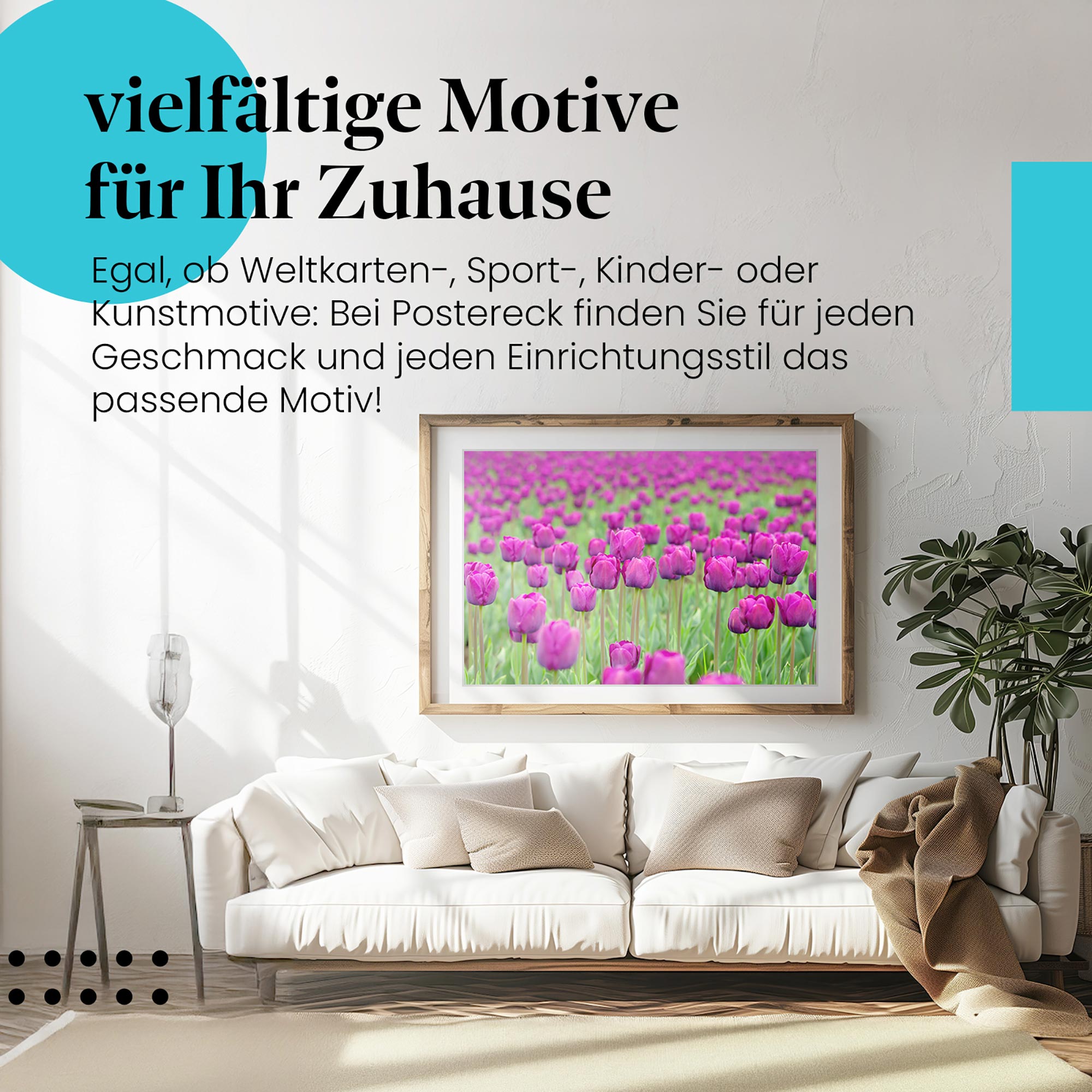 Frühlingsgefühle pur: Ein beeindruckendes Blumenfeld mit unzähligen violetten Tulpen. Die leuchtenden Farben und die Blütenpracht versprühen pure Frühlingsfreude. Ein Anblick, der glücklich macht!