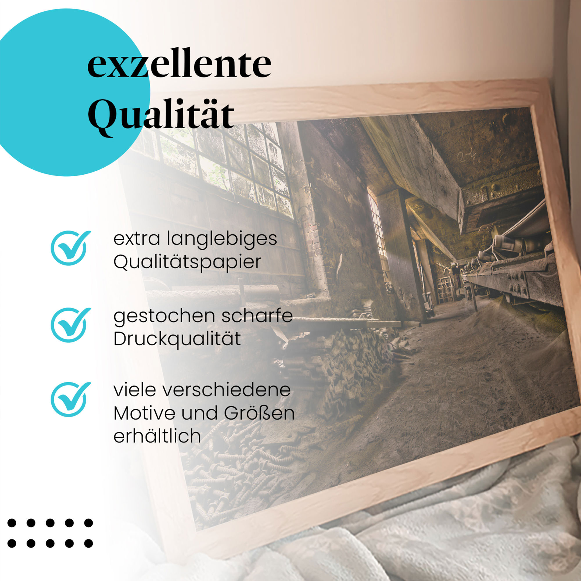 - Hochwertige Leinwand auf Echtholzrahmen (bei Leinwandbildern):