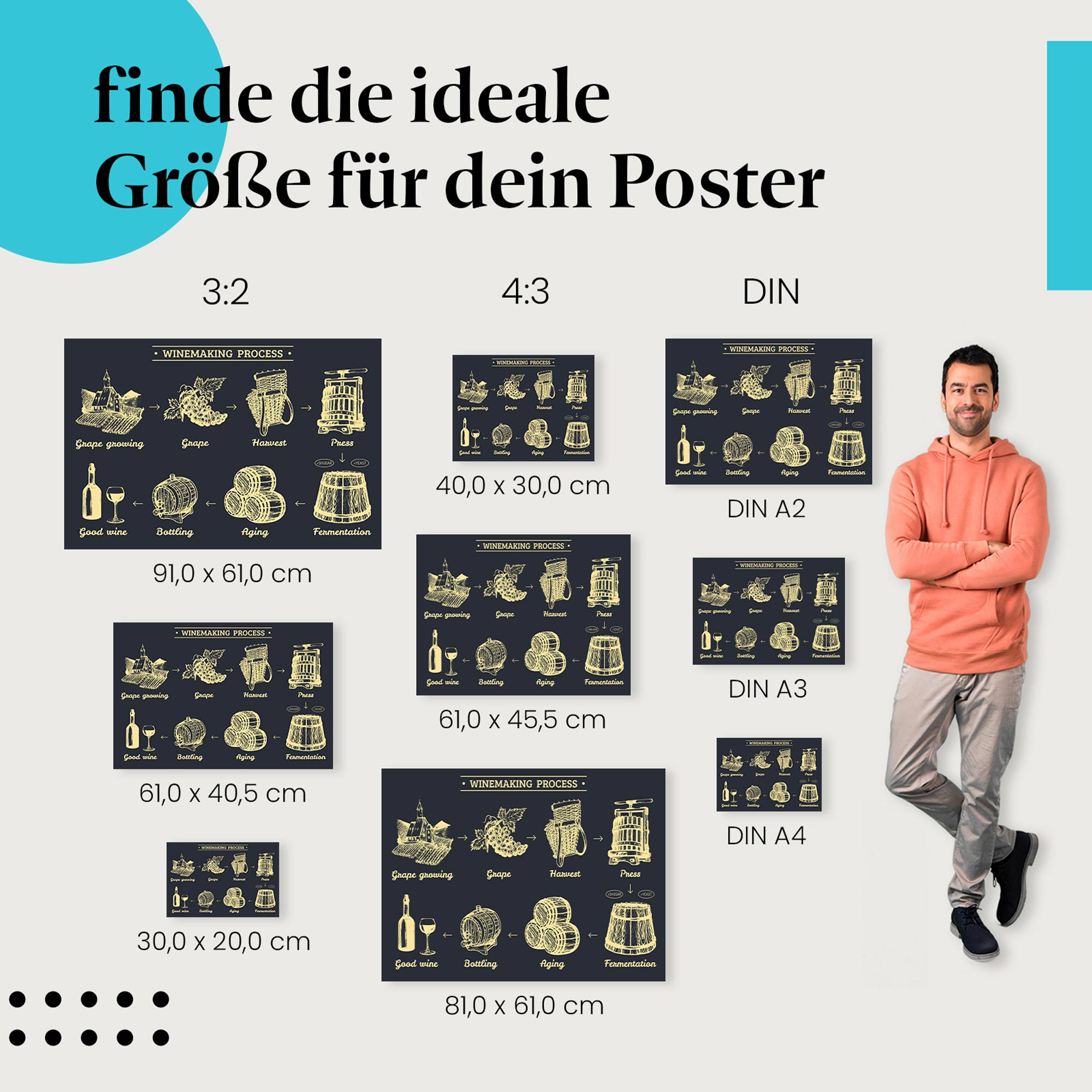 Entdecke die Welt des Weins! Dieses Poster zeigt dir die einzelnen Schritte der Weinherstellung.
